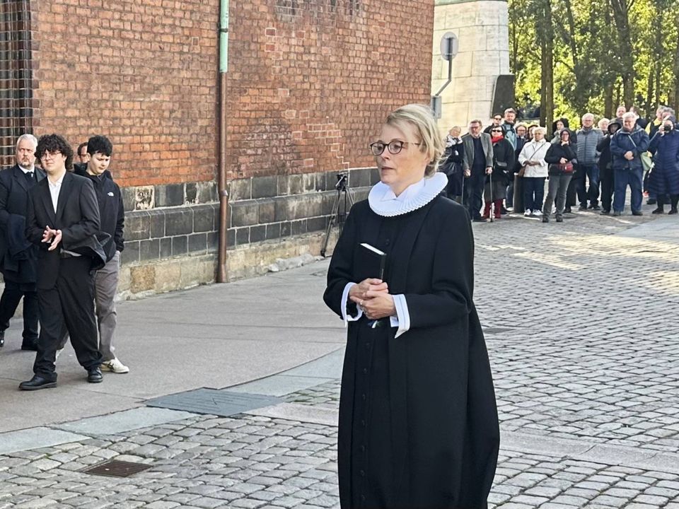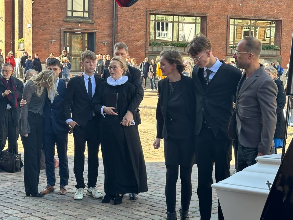 »Tak, fordi I er kommet så mange her i dag. Han skulle bare se det her. En fyldt Aarhus Domkirke er mere, end selv Kjeld havde håbet på. Og han fryder sig, det kan I være helt sikre på. I den ånd vil vi være sammen om at tage afsked,« sagde hun.