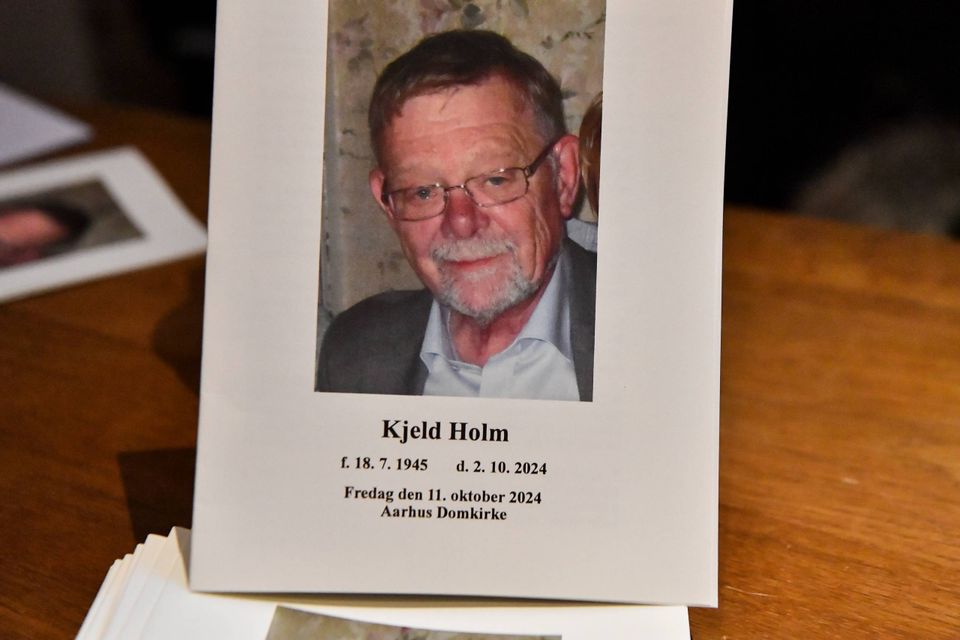 Kjeld Holms datter Nanna Holm holdt en smuk, præcis og humoristiske begravelsestale: »Han fryder sig over en helt fyldt Aarhus Domkirke,« sagde hun.