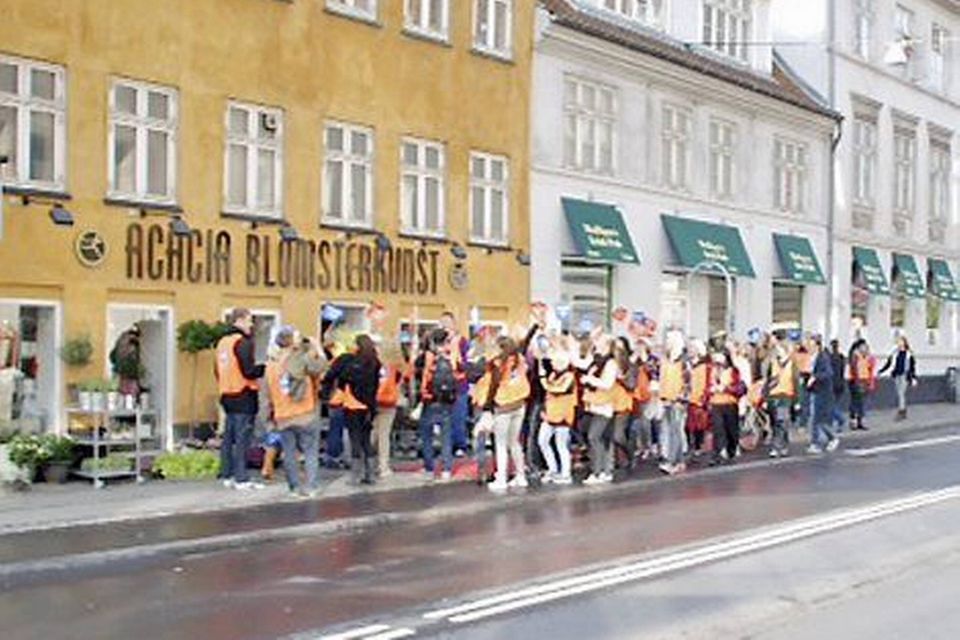 60 elever fra Roskilde Tekniske Skole var tirsdag formiddag med i en glædes-begivenhed på Algade i Roskilde for at fejre en af de virksomheder, som underskriver aftaler om praktikplads med elever på erhvervsuddannelserne.