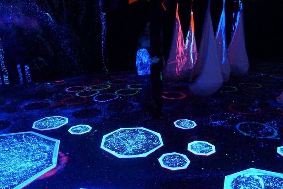 På udstillingen kan børnene komme på rakettur ud i rummet og styrte ned, blive jagtet af et rumvæsen, beskudt af meteorer og bygge forsvarsværker af skumgummipuder, eller de kan vove sig ind i en mørk labyrint.