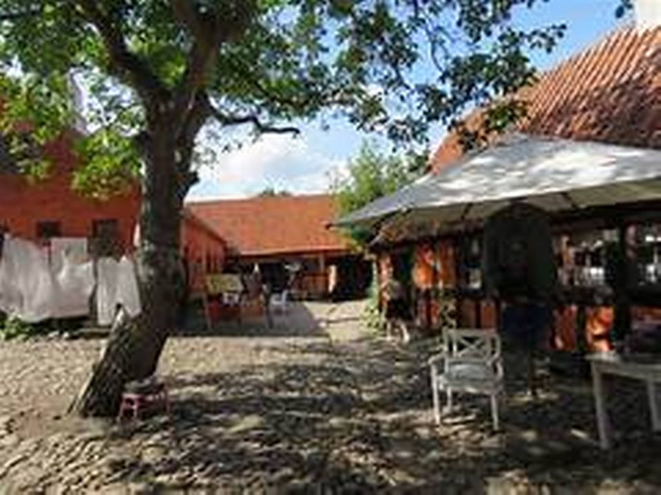Man er velkommen til at spise medbragt mad i Farvergårdens have og ikke mindst på gårdspladsen under det store valnøddetræ.