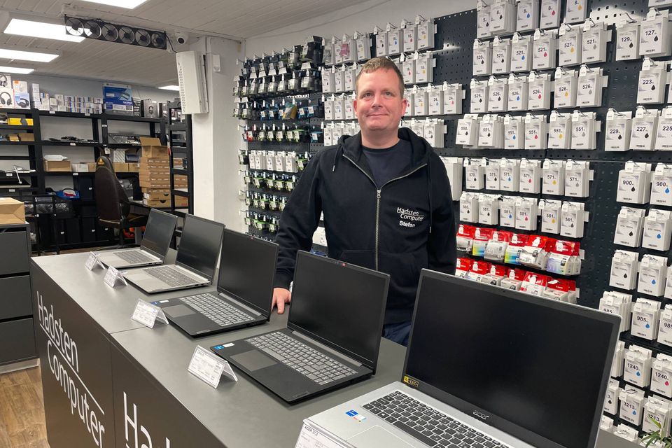 »Vi mangler simpelthen lagerplads. Hvis ikke det skal ende i kaos med alle vores dimser og dutter, så skal vi have noget mere plads at sætte tingene på,« siger Stefan Granholm, der ejer Hadsten Computer.