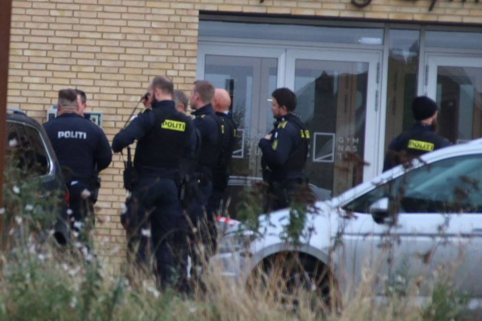 Politiet har torsdag været massivt til stede på Nyborg Gymnasium.