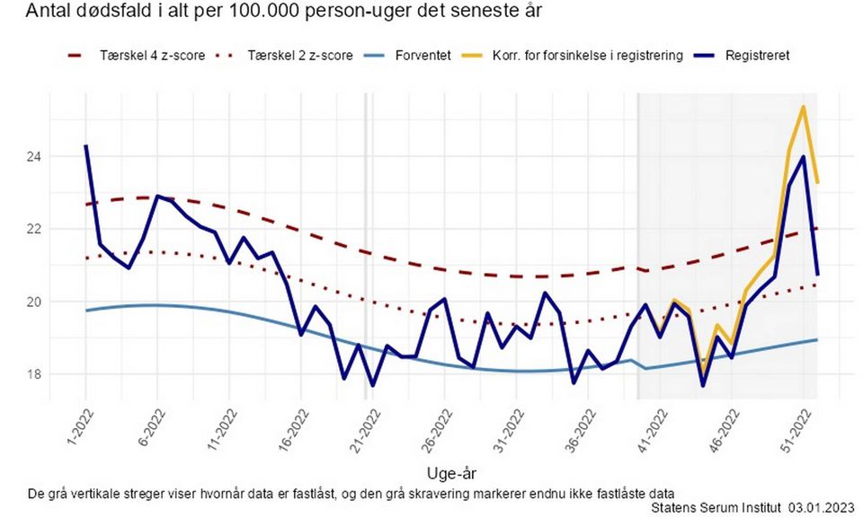 Den forhøjede dødelighed, der er registreret fra uge 50 til uge 52, kan dog skyldes flere årsager.