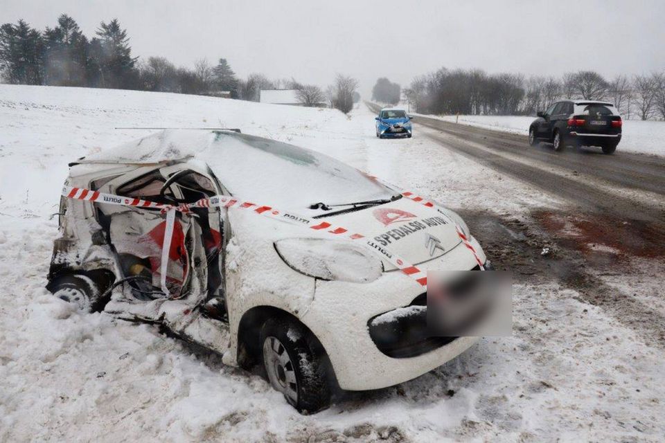 "Vi kan kun gisne om årsagen til, at hun mistede herredømmet over bilen, men det var glat, og vi havde flere glatføreuheld omkring Skanderborg. Den modkørende har forklaret, at bilen pludselig drejede rundt på vejen og ramte med siden ind i hans bil," fortæller politikommissær John Skjødt fra Sydøstjyllands Politi.