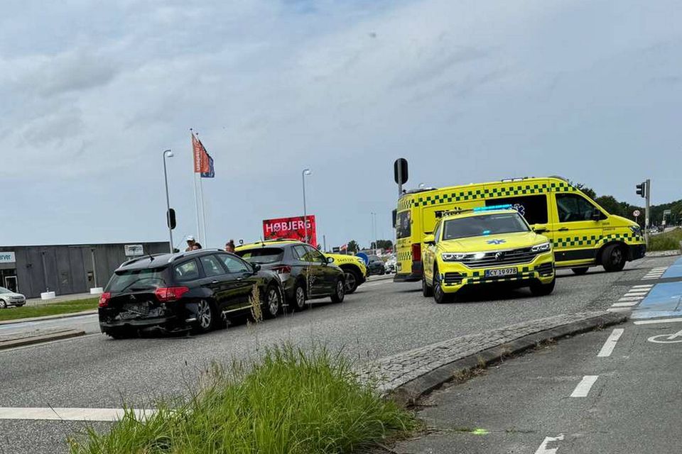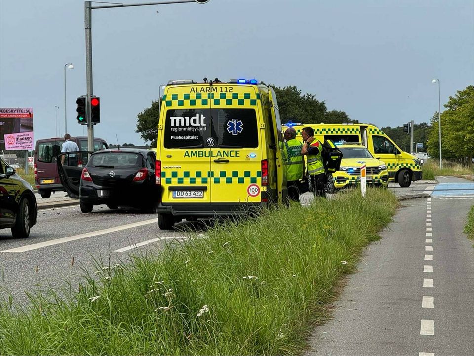 Lørdag eftermiddag kort før klokken 15 var tre biler involveret i et sammenstød i krydset ved Rugvænget og Århusvej i Grenaa.