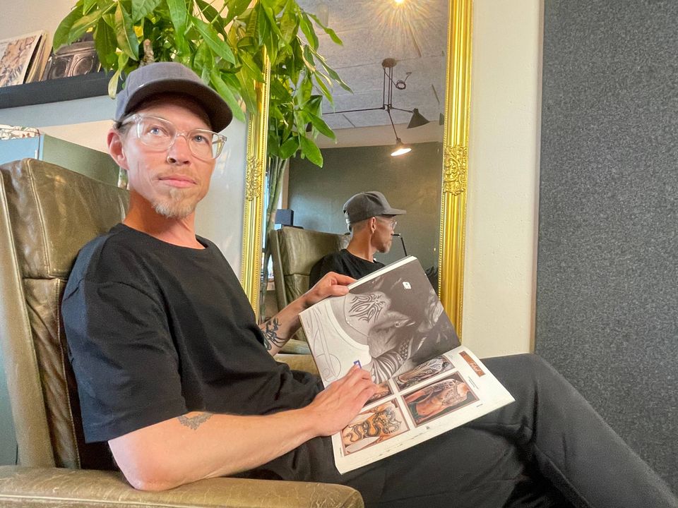 Det tager ikke mange sekunder at opdage, at sådan arbejder han som tatovør.