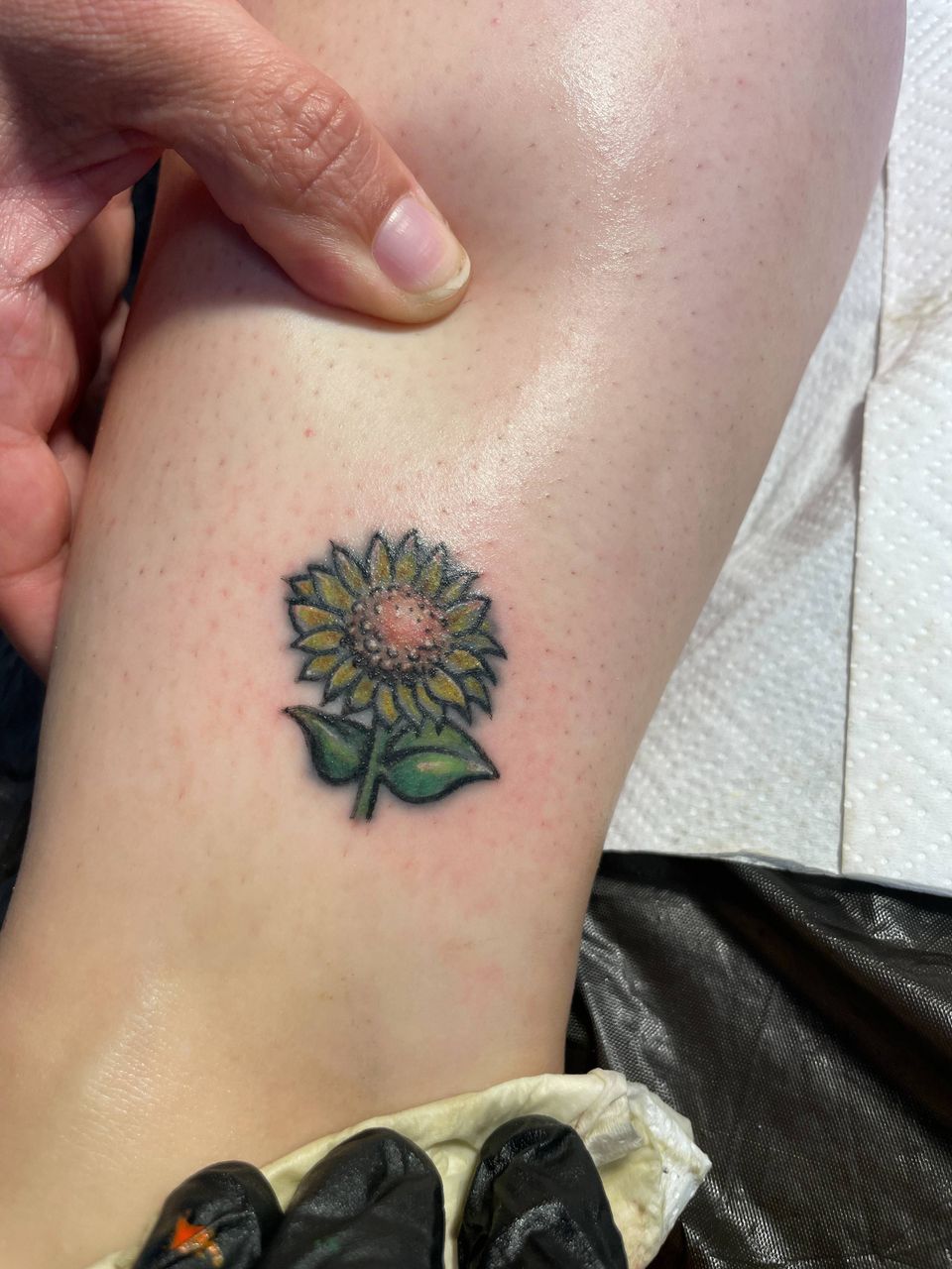 Den lille solsikke har fået nyt liv, og selv om motivet er så uambitiøst som kun en opfrisket 90’er-blomst kan være, så står det alligevel rimeligt klart: Når nålen går i gang, kan man ikke gemme sig – og måske er det netop pointen.