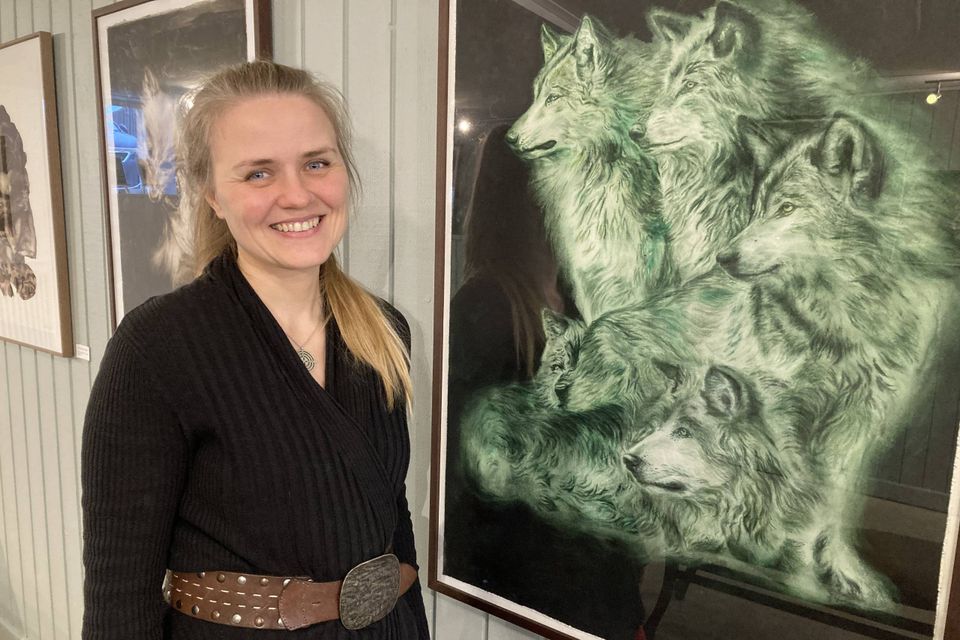 Som nævnt lader hun gerne sine værker være en kommentar til forskellige måder at opfatte naturen på. Eksempelvis kan man i galleriet se et billede af fem ulveansigter, der kigger i hver sin retning. De udtrykker deres fem forskellige forventninger til fremtiden, forklarer hun.