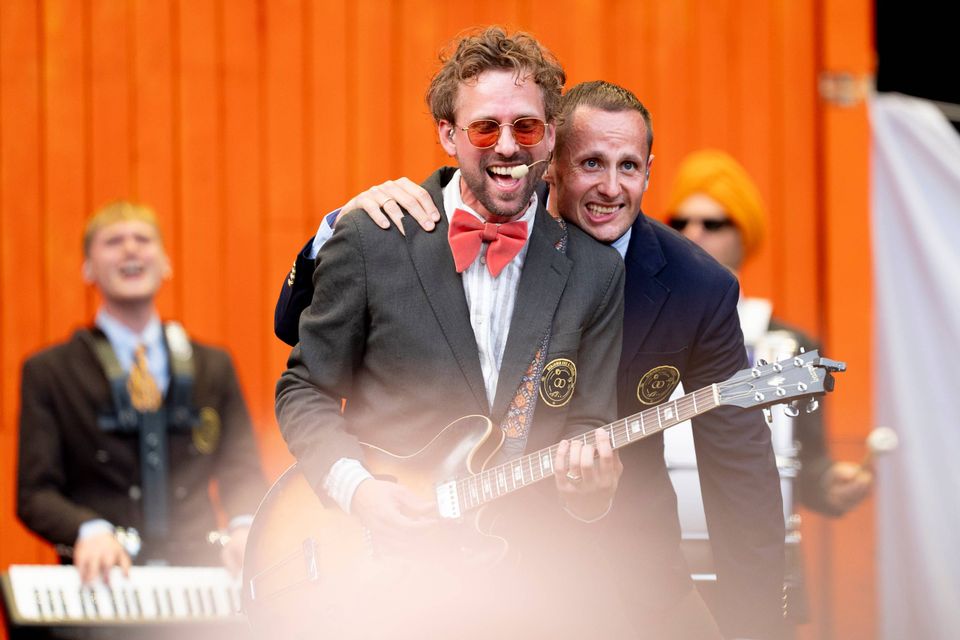 De 5.000 i parken kan ikke se scenen lige så godt som på øen, men de kan få det hele med på en storskærm, hvis uheldet er ude.