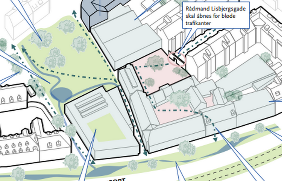»Beboerne undgår også at få boliger i fem etager på hjørnet af Kaløgade lige ud til den åbne p-plads. Den tidligere ejer ville forhøje den toetagers bygning til en på fem etager,« siger hun.