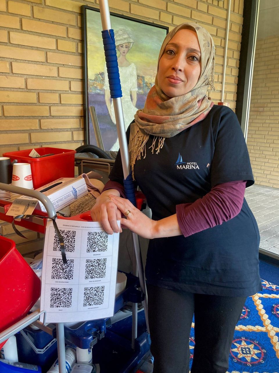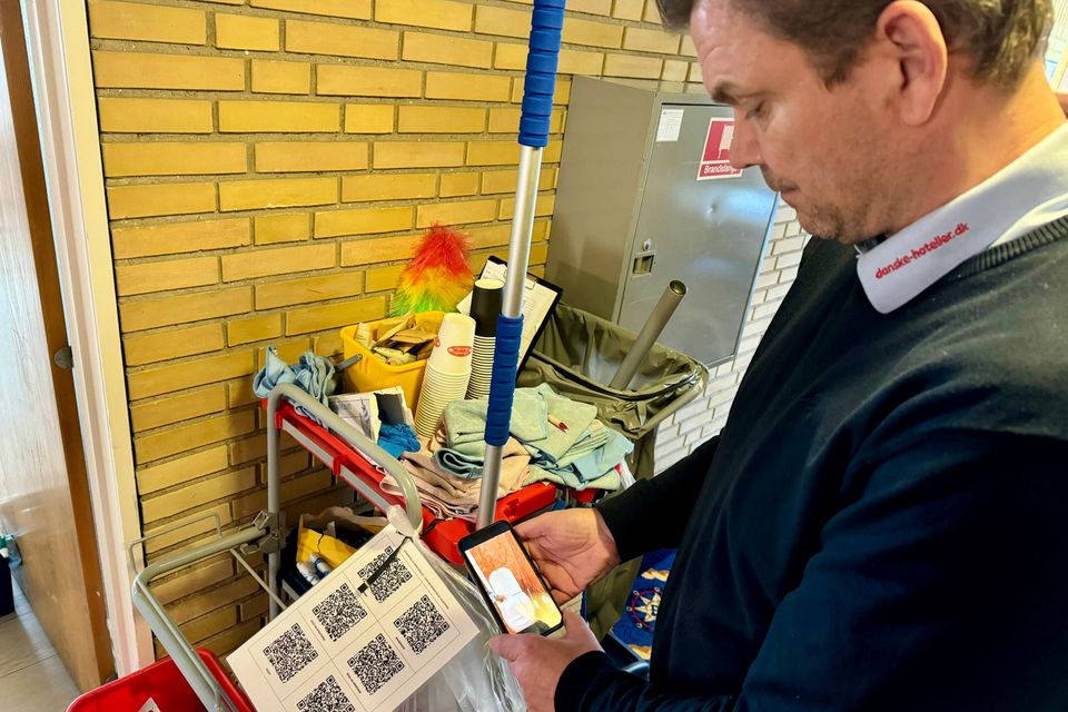 Videoerne får medarbejderne op på telefonen ved at scanne en QR-kode, som er sat fast på rengøringsvognen.