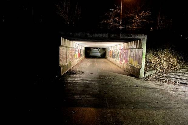 1. At gå gennem en graffitiovermalet tunnel, hvor belysningen ikke altid virker.