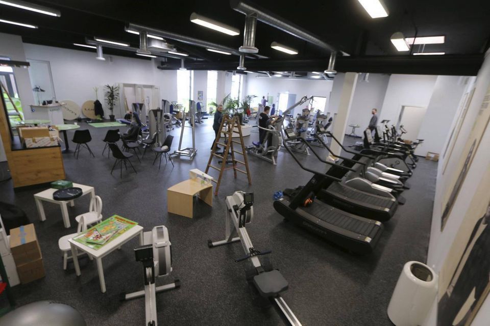 I den anden ende af Tema Centret knokler de med at få koblet de store kondimaskiner til. Loop Fitness har brugt to dage - torsdag og fredag - på at flytte det hele.