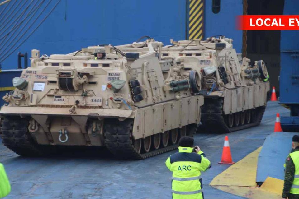 Materiellet skal efter transit i Aarhus videre ad landvejen mod destinationer i Østeuropa. Anløbet til Aarhus Havn sker efter en officiel anmodning fra US Army, der kortvarigt også vil indkvartere 25 soldater i byen.