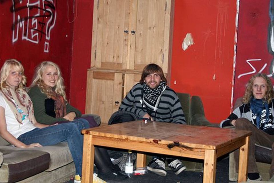 Politik og venstreorienterede unge i sofaer i Ungdomsskolens lokaler. Hver torsdag mødes lokale unge for at diskutere aktuel politik