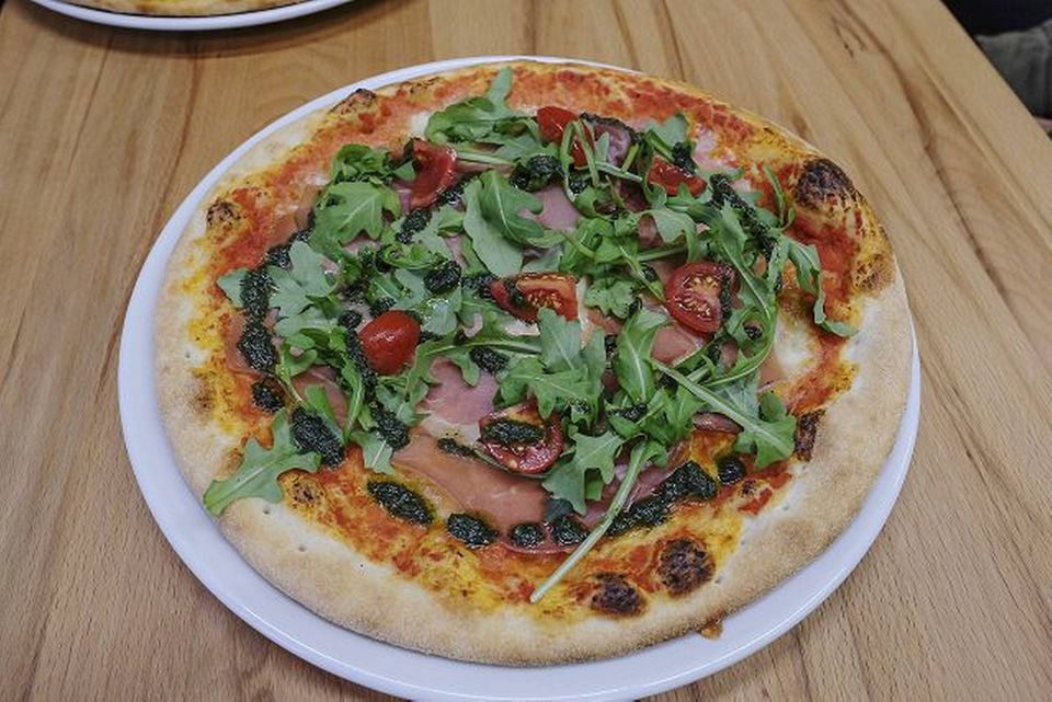 Ja, det hedder nummer 4. Den var med frisk mozzarella, parmaskinke, rucola og solmodne tomater og en sjældent god basilikumpesto. Prisen var 85 kroner. En fin pizza, hvor skinken og basilikumpestoen klart tog opmærksomheden.