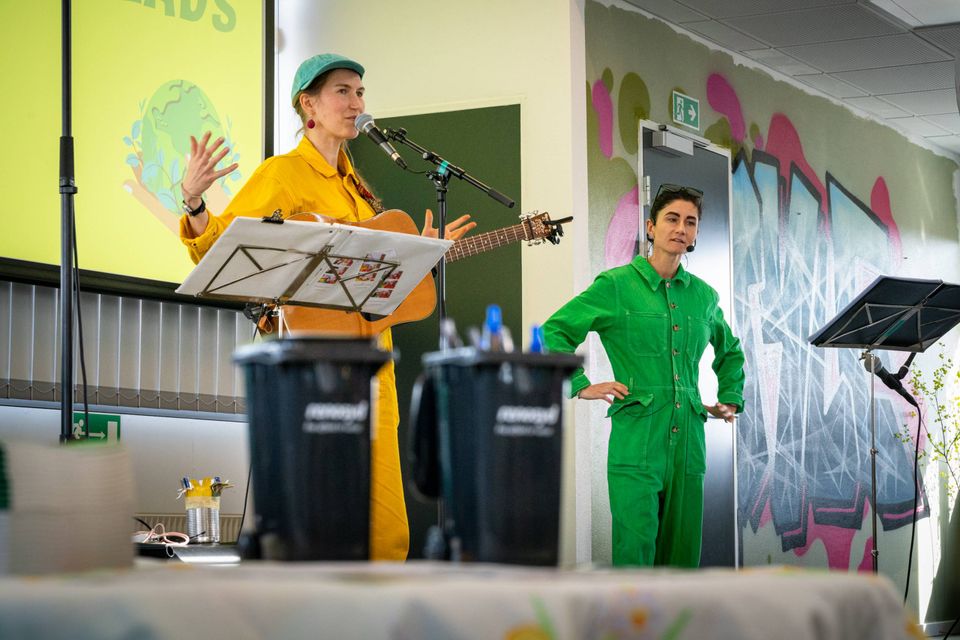 Til et stort bifald gik Karin ydmygt på scenen for at modtage prisen, som blev overrakt af formand for kommunens Klima-, Miljø- og Planudvalg og medlem af Det Grønne Panel, Claus Leick. Med prisen følger en unik vandrepokal fremstillet af genbrugsmaterialer fra Værdicentralen i Skanderborg.