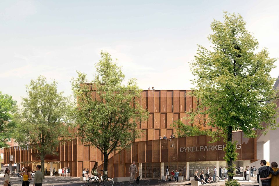 Parkeringshuset bliver udført i cortenstål og får trappeforløb og terrasser på sydsiden af huset i samme højde som Kulbroen.