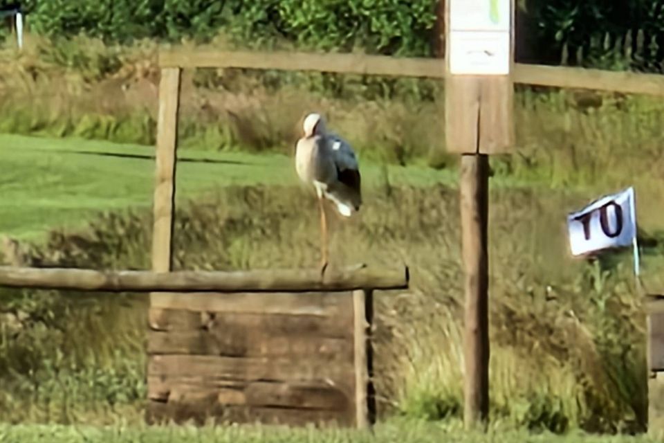 »Da jeg kommer lidt ned på banen, ser jeg en stork på en af forhindringerne. Det kommer fuldstændigt bag på mig, og jeg bliver nærmest ramt af en slags ærefrygt, som havde der siddet adskillige havørne dernede,« skriver han i en besked til avisen.