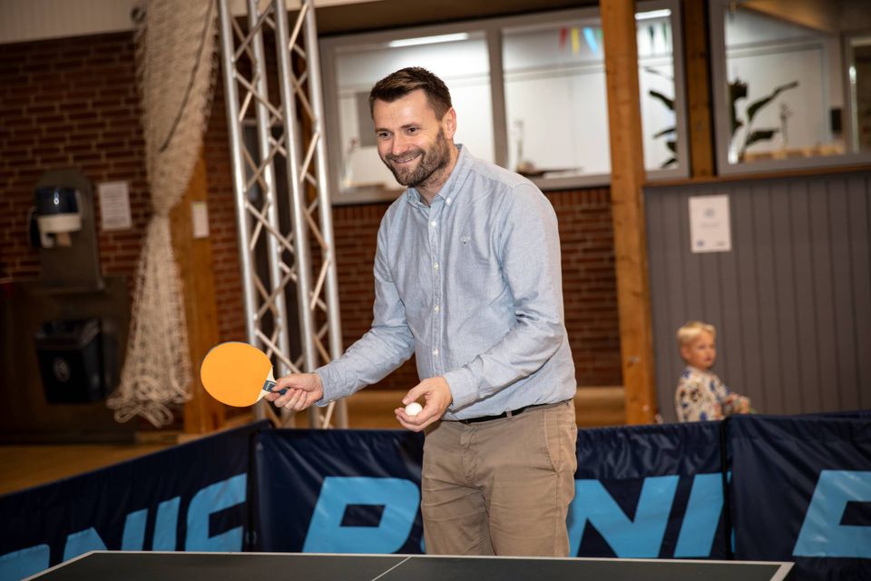 Idrætscentrets hjerte, cafeen, rungede af fællessang, da Bjarke Mathiasen fra Go’ Kaffe indledningsvist guidede forsamlingen sikkert igennem to fællessange.
