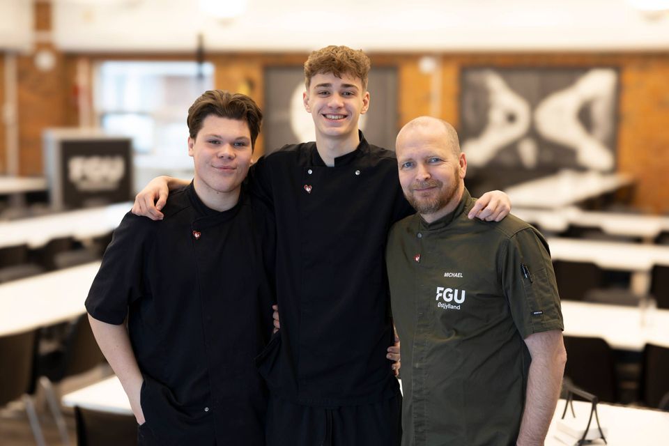 Sidste år stillede Tobias, Mathias og køkkenunderviser Michael Jacobsen op til dette portræt. Foto: FGU Østjylland