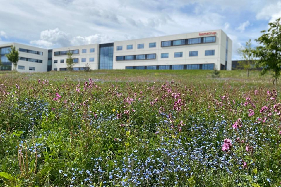Kamstrup har omlagt sine udendørsarealer så naturen kunne rykke ind - nu glæder masser af vilde blomster både medarbejderne og de forbipasserende.