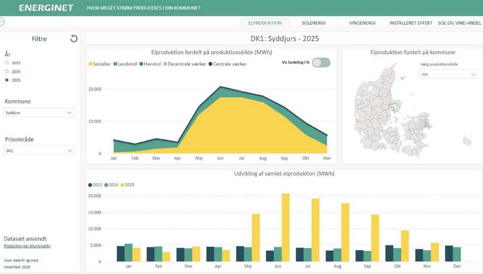 Herved får man selvfølgelig i visse perioder en overproduktion af el i forhold til kommunens forbrug, når der er rigeligt med sol og vind, og omvendt en mindre produktion af el i forhold til kommunens forbrug, når der er lidt vind og ingen sol.