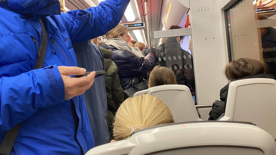 Denne morgen står passagerne som sild i en tønde i et af L1-togene, og størstedelen af sæderne er optaget.