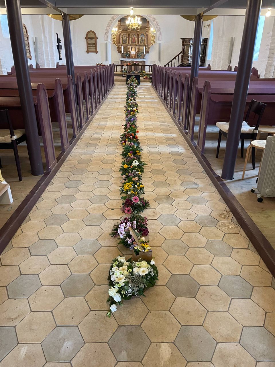 Kirkebænkene var ved at være fyldt ud, og folk begyndte at tage stole i våbenhuset med ind i kirken og tage plads på kirkegulvet. Mange stod også op inde i kirken, og det lille våbenhus blev fyldt op med 30-40 personer.