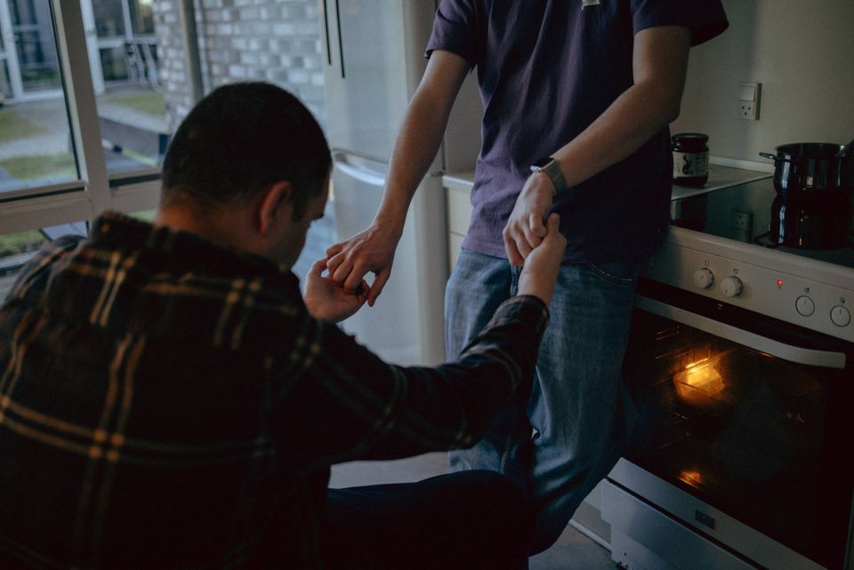 Det er også i det køkken, Sebastian deler med sin ven Peter, hvor han kan finde på spontant at finde et piskeris frem fra skuffen og kigge mod et personale.