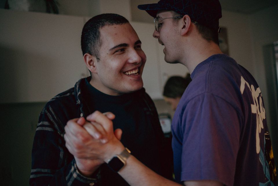 En time er lidt lang tid. Mellem hyppige kig ind gennem ovnruden udstøder Sebastian små grin, smiler stort og vipper begejstret med hænderne. Der er endda tid til en lille dans med Jacob Dyhrberg, som er ergoterapeut på stedet – og som tydeligvis er meget populær hos Sebastian.