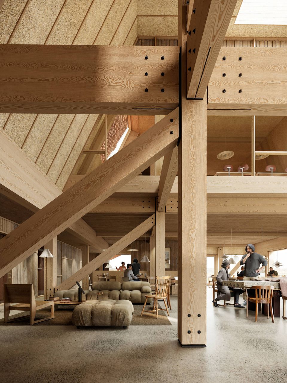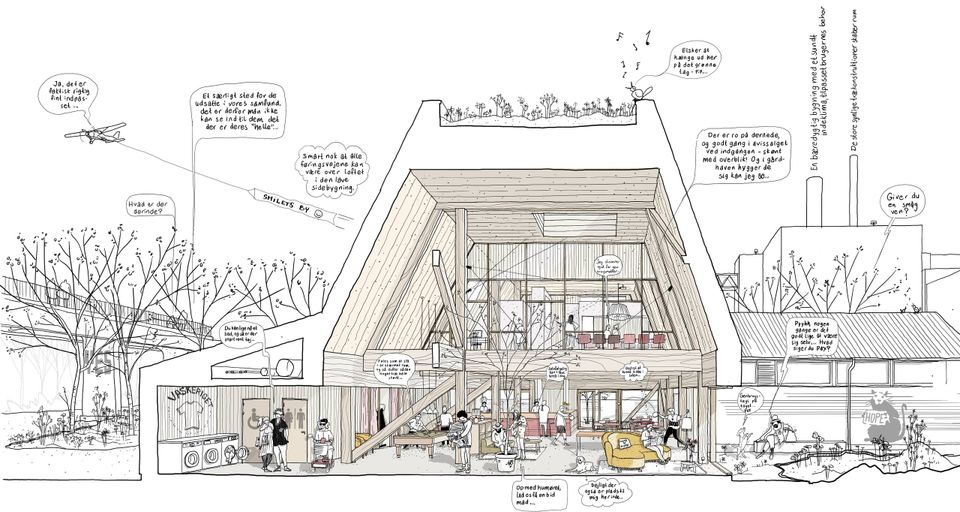 I det nye værested vil brugerne blive budt velkommen i et stort fællesrum med plads til spisning, afslapning og aktiviteter. Synlige trækonstruktioner skaber afgrænsede rum uden at gå på kompromis med den åbenhed, der skal skabe tryghed og gøre stedet let at overskue for både brugere og medarbejdere. Fra fællesrummet er der direkte udgang til et skærmet gårdmiljø uden indkig fra Kulbroen eller områdets kontorbyggerier.