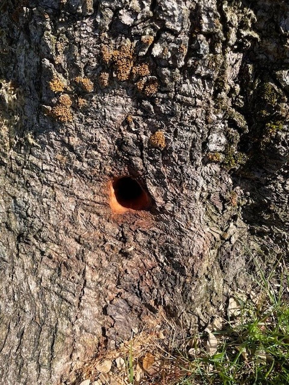 »Hullerne er alt for pæne og regulære til, at de kan være lavet af en spætte. Vi kan også se, at der ligger spåner på jorden efter, at der er boret i træet,« siger Jens-Erik Dengsøe, entreprenørchef i Skanderborg Kommune.